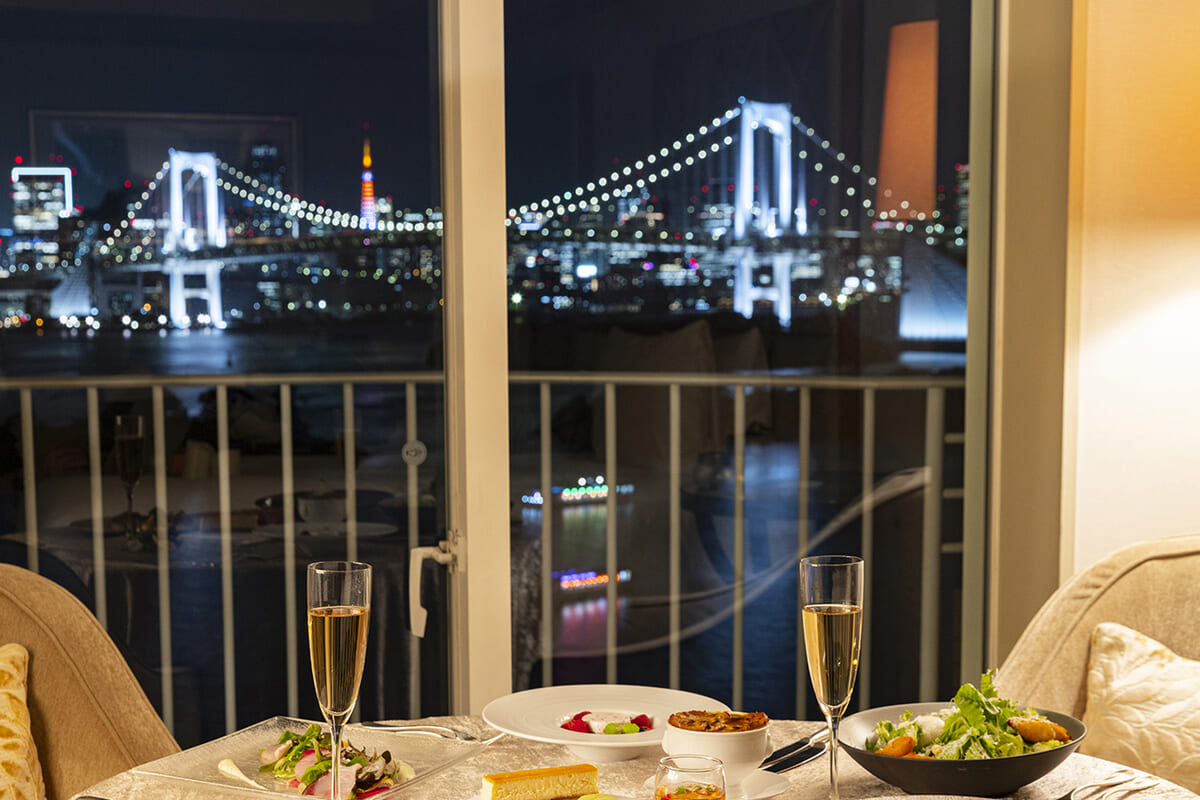 お部屋でゆったりとディナーを楽しめるルームサービス付きです。