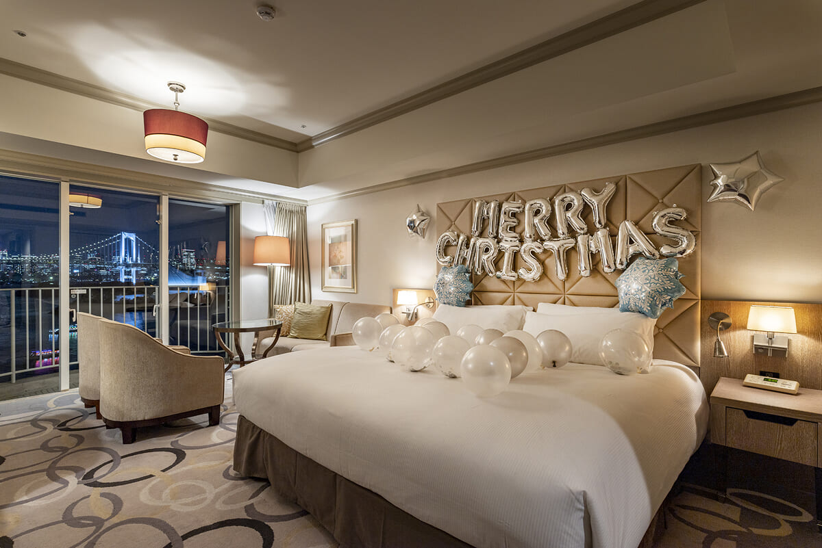 クリスマスバルーンセット、カチューシャ、HDMIケーブルを借りて楽しめる宿泊プラン。