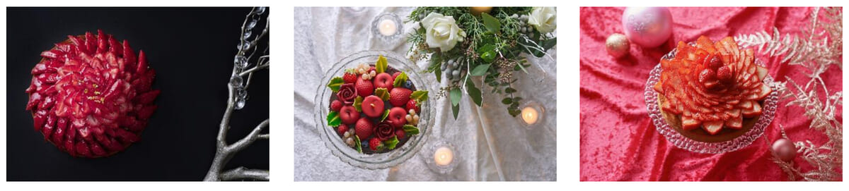 価格:プレミアム黒いちごのタルト 11,800円、あまおうのタルト 8,250円、ブーケ・ド・ノエル 9,000円 など