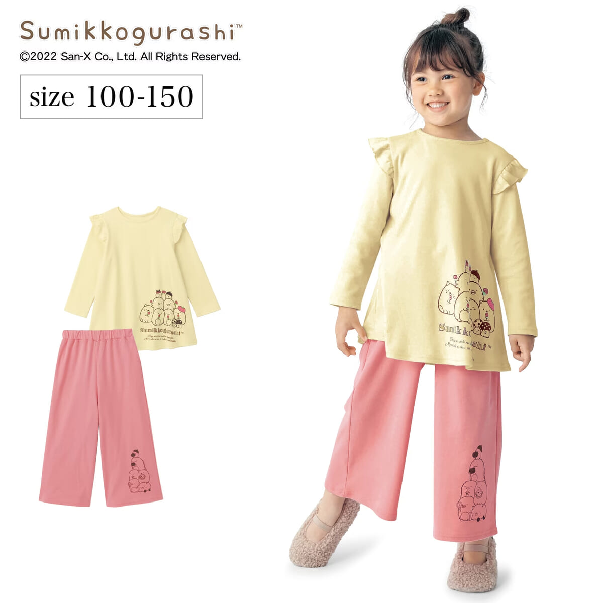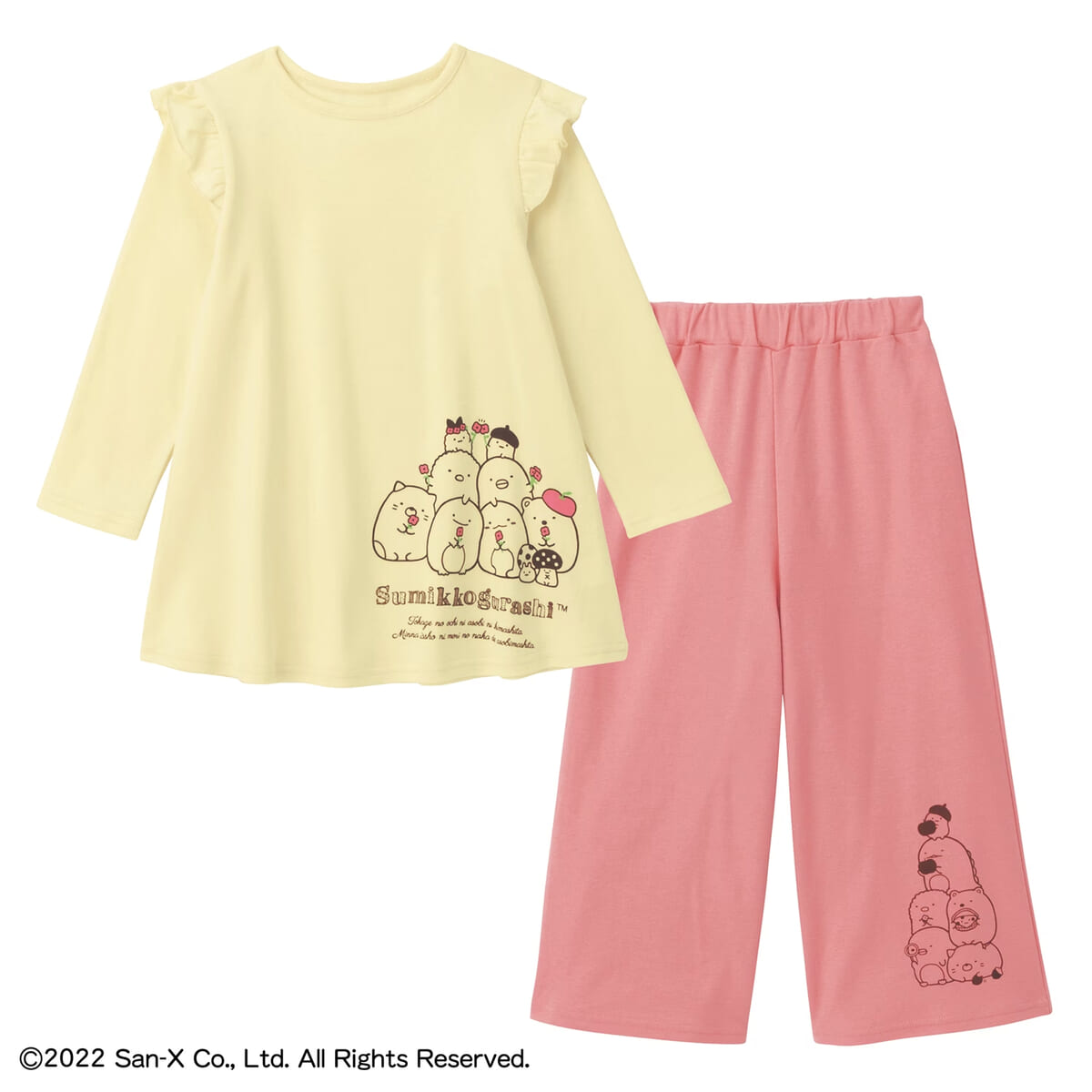 トップスにもボトムにも、キュートな「すみっコ」たちがプリントしてあるルームウェア!