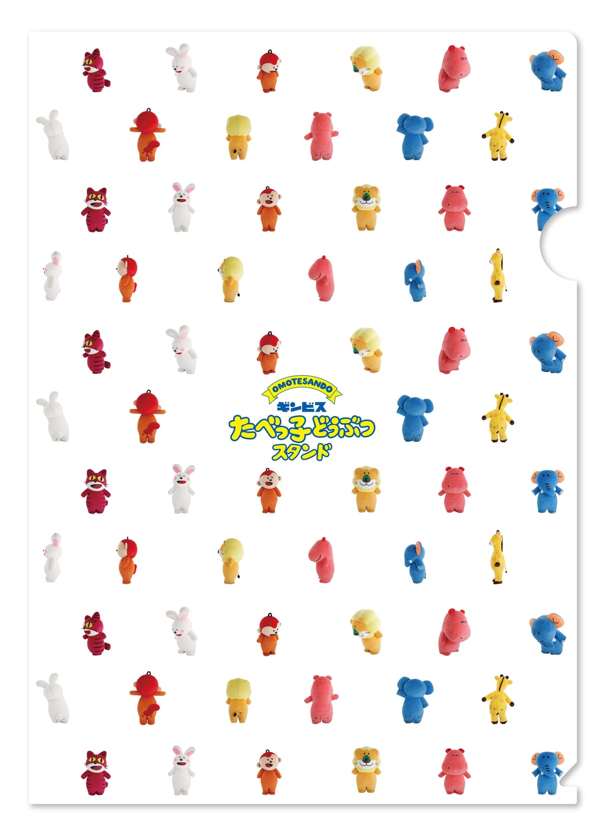 「たべっ子どうぶつスタンド」仕様のどうぶつたちのパターン柄クリアファイル。