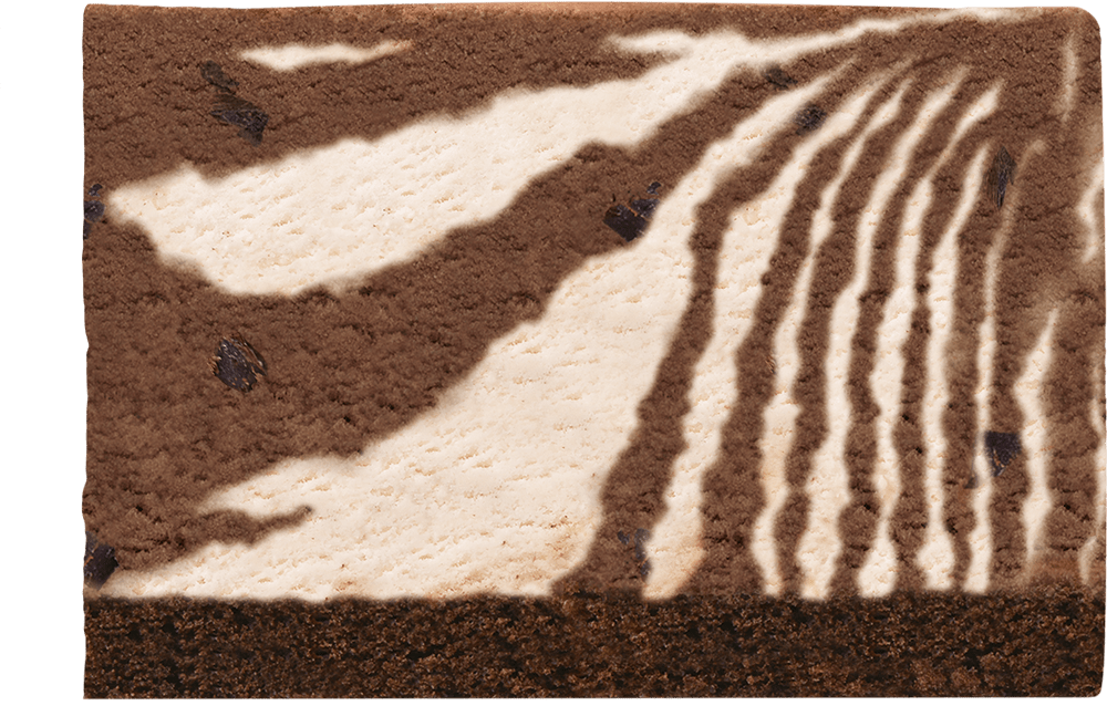 ケーキのフレーバーは、チョコレートスポンジの上に乗ったダークチョコビッツ入りチョコレート×ホワイトチョコレートと、