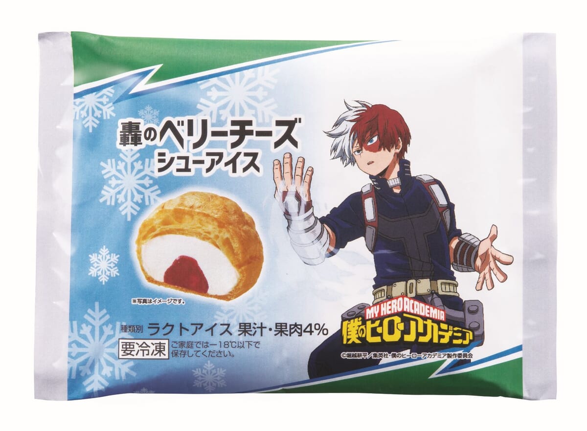 「轟焦凍」をイメージしたシューアイスは、香ばしく焼き上げたシュー皮に、チーズアイスと赤いベリーソースを充填。