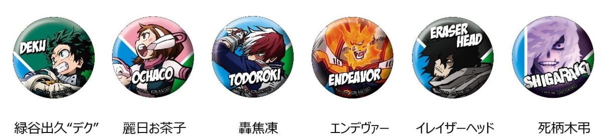 2022年10月25日からの第1弾には、「緑谷出久」や「麗日お茶子」などの缶バッジ全6種が登場。