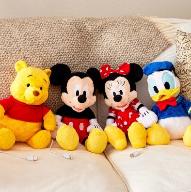 「ミッキーマウス」たちの背中が、USBでポカポカあったかくなるぬいぐるみ。