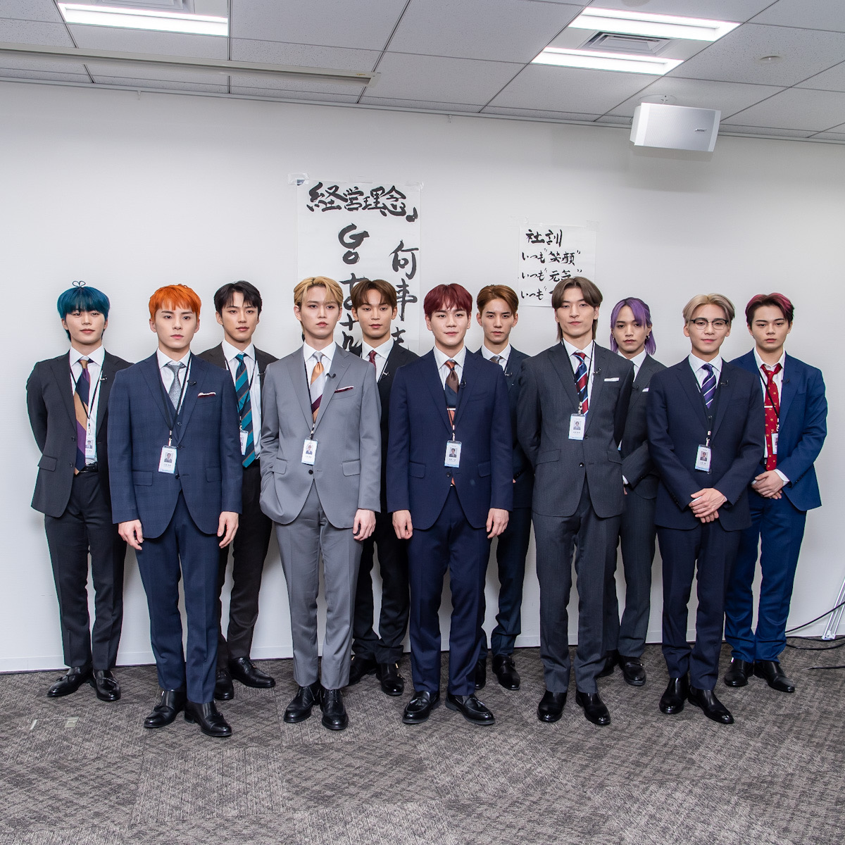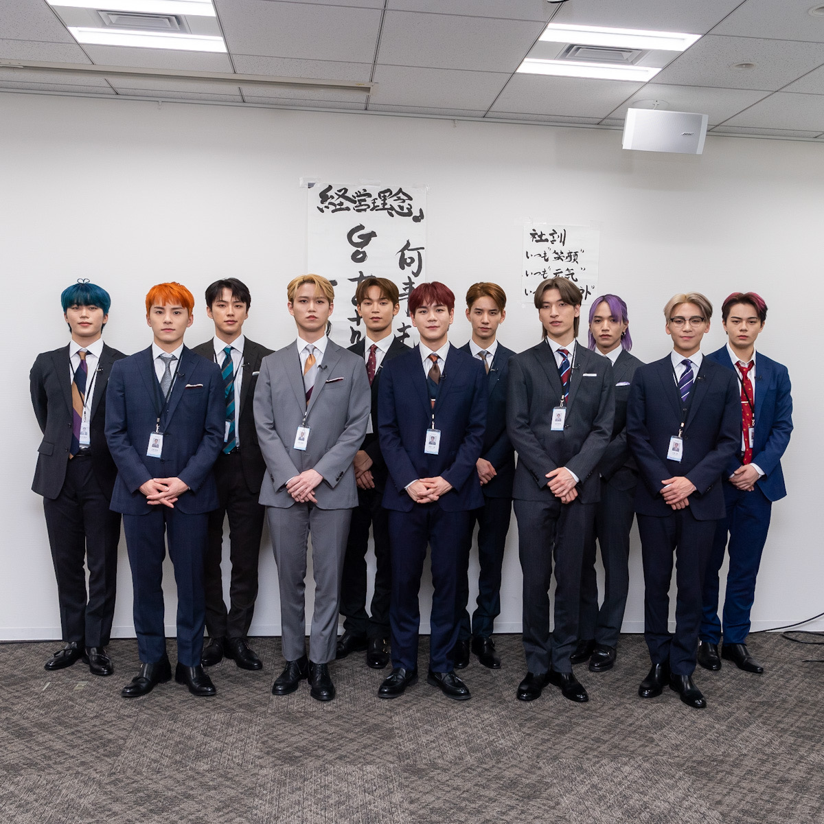 元気よく挨拶して会議室⼊りするJO1クリエイティブ社の11⼈。