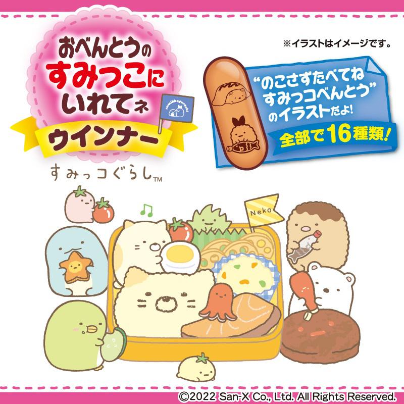 ウィンナーにキュートな「すみっコ」たちのイラストが入った「おべんとうのすみっこにいれてネ ウインナー」
