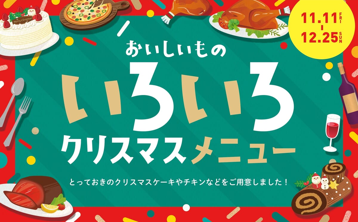 施設内の飲食店では、この時期限定のクリスマスケーキやオードブルなど、さまざまなメニューが勢揃い。