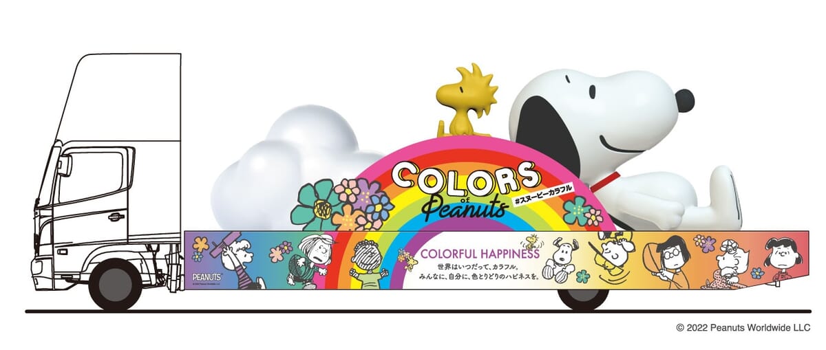 「COLORS OF PEANUTS」をテーマにした、巨大な「スヌーピー」「SNOOPY HAPPINESS FLOAT 2022」を乗せたトラックが登場!