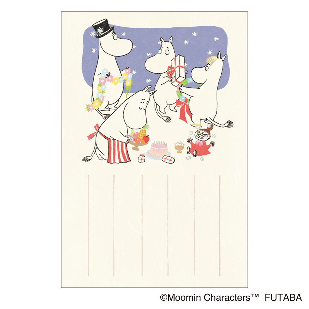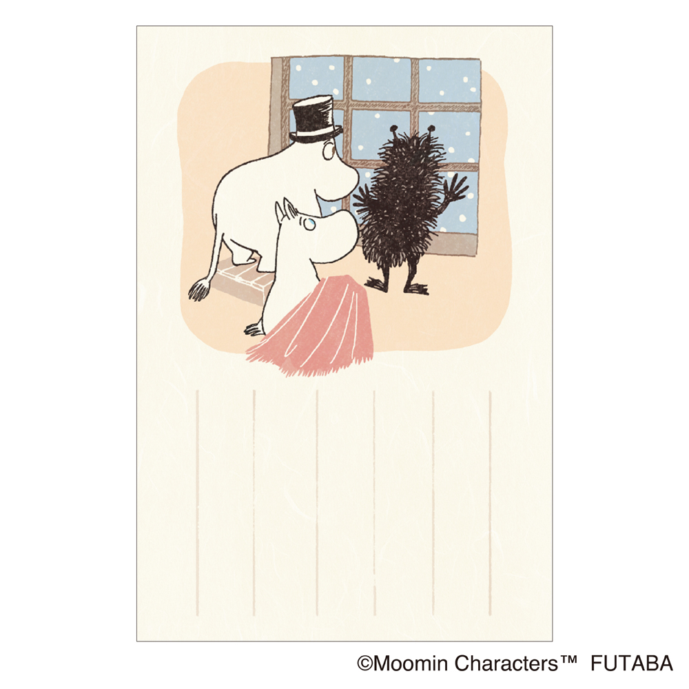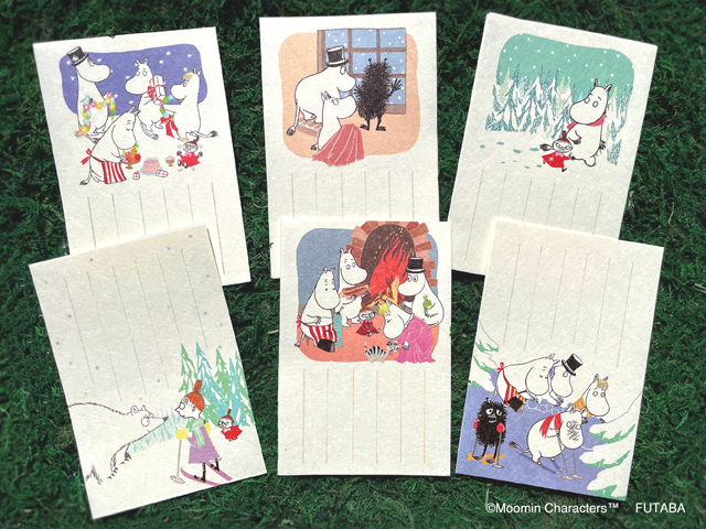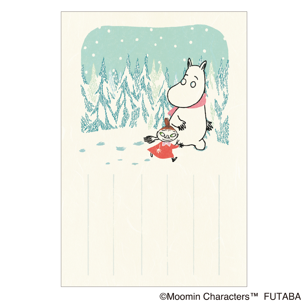 冬のイラストが印象的な、和紙を使用した『ムーミン』デザインのはがきと一筆箋!