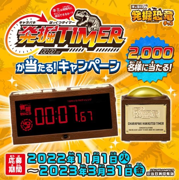 「キャラパキ 発掘恐竜」の発売を記念し、「キャラパキ発掘タイマーが当たる!キャンペーン」を実施!