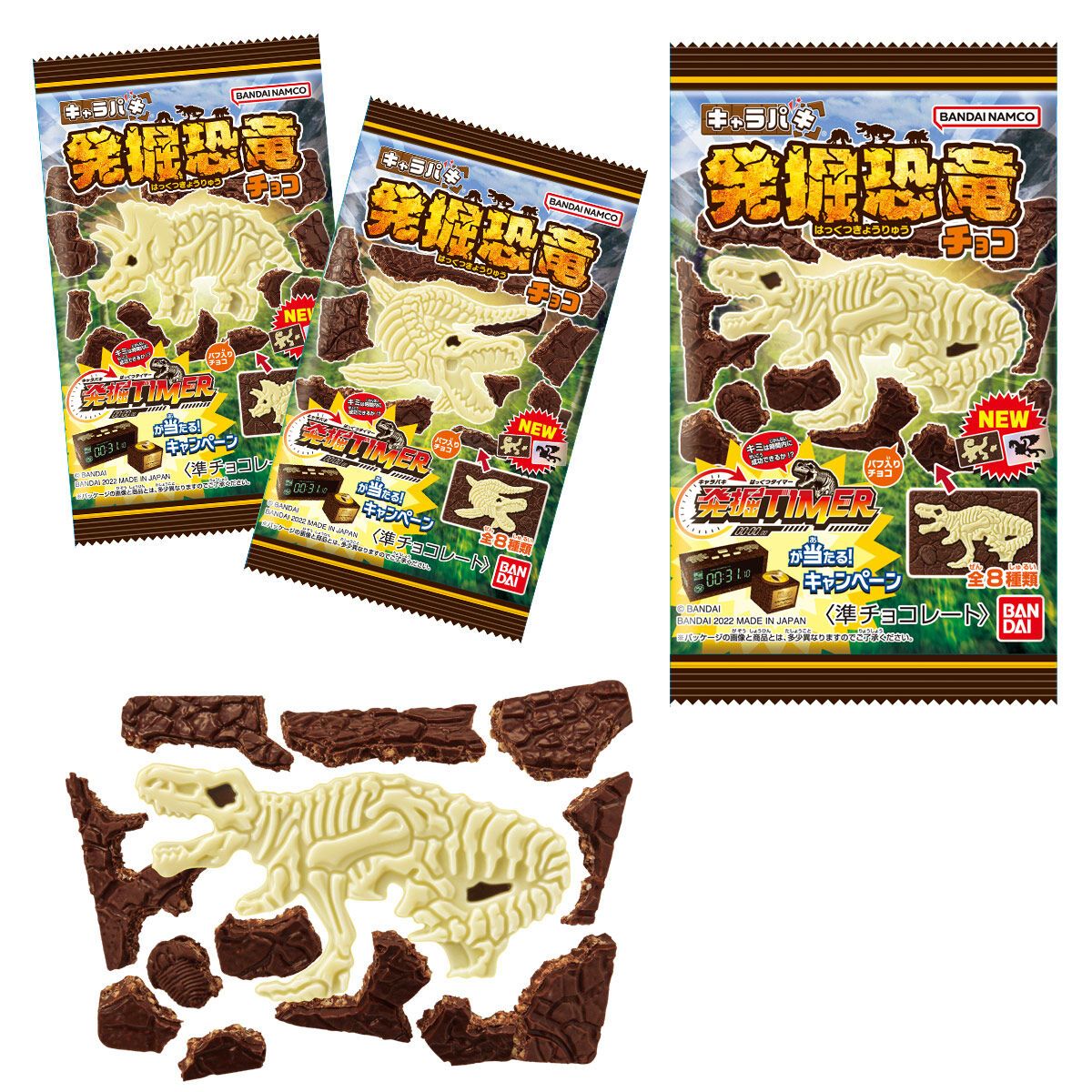 バンダイのチョコレート菓子「キャラパキ」シリーズより、一部チョコのデザインがリニューアルした「キャラパキ 発掘恐竜」の新弾が登場!