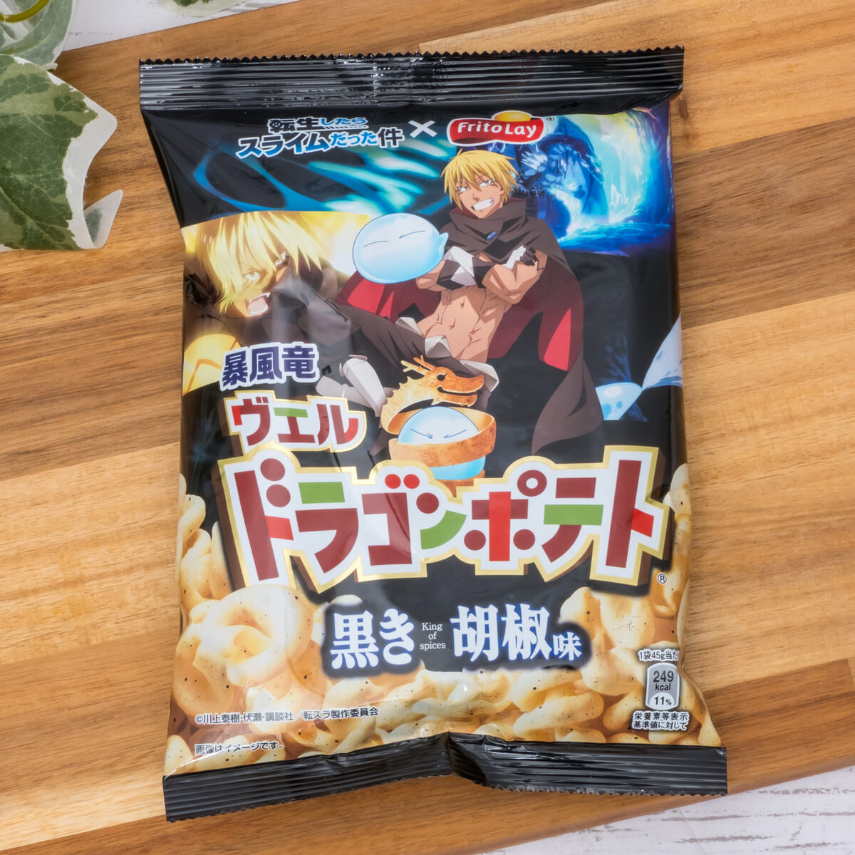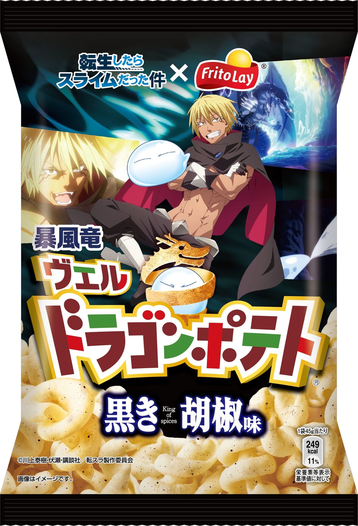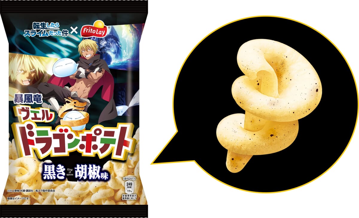 主人公「リムル=テンペスト」の友で『転生したらスライムだった件』を代表するキャラクター「暴風竜ヴェルドラ」の技「黒き稲妻」をイメージした「ドラゴンポテト 黒き胡椒味」