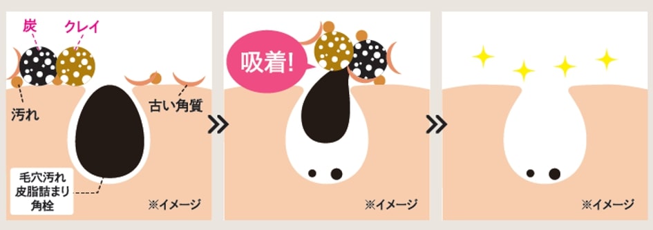 炭とクレイの吸着効果で角栓や毛穴汚れをからめとり、スッキリ除去