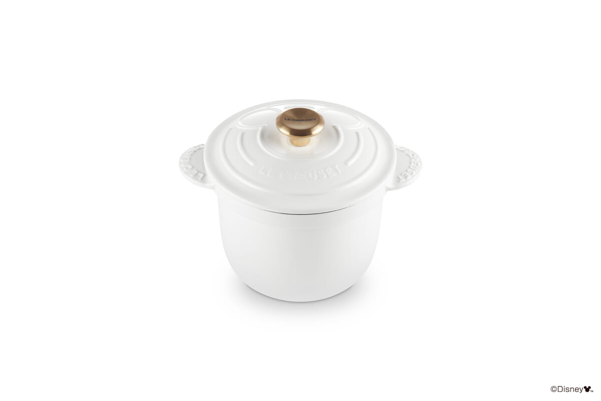 「ミッキーマウス」のアイコンをさりげなくフタに施し、ゴールドのツマミ(ノブ)を合わせることで、高級感のある装いに。
