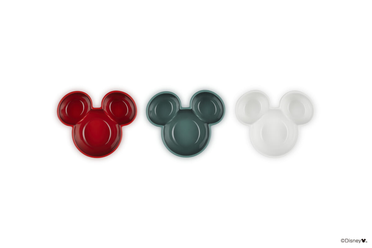 さらに「ミッキーマウス」のアイコンをかたどった「ミニ・ディッシュ」は赤、白、緑のホリデーカラーの3色セットで揃え、温もりのある冬の食卓を演出します。