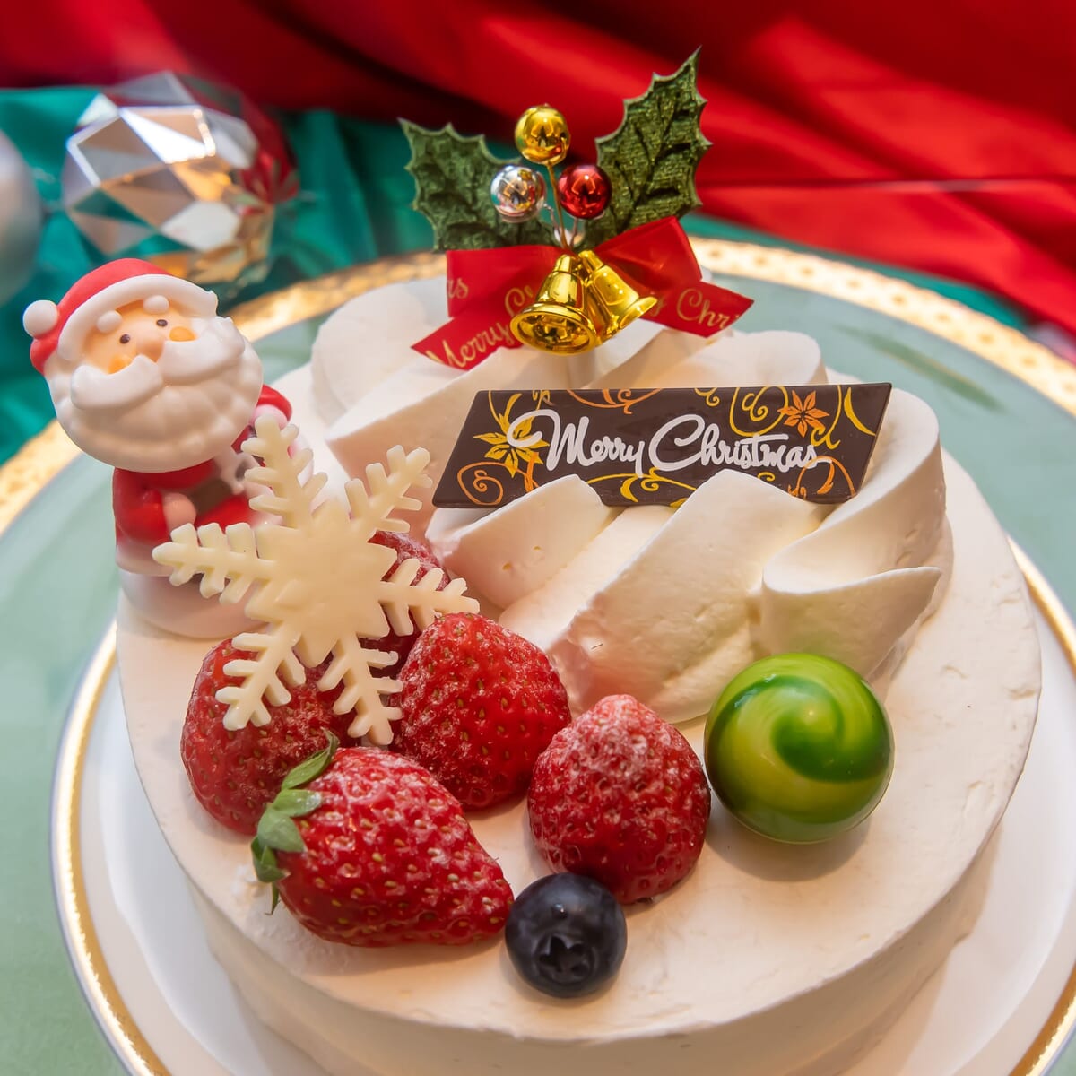 トップのクリスマス飾りやサンタクロースがかわいらしい「シェラトン クリスマスショートケーキ」