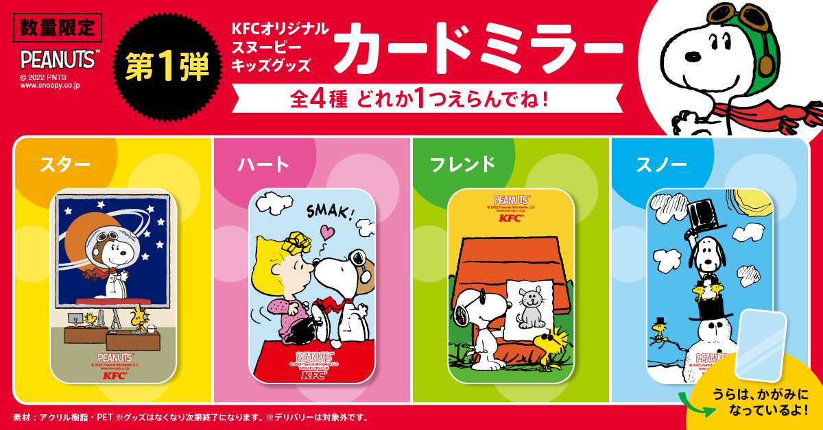 ケンタッキーフライドチキンに、様々な「スヌーピー」の“変装”が楽しめるオリジナルグッズが登場!