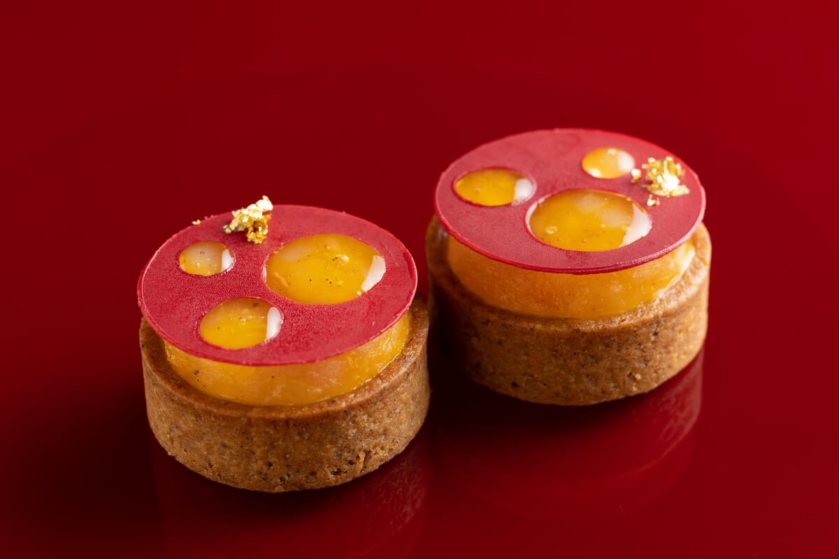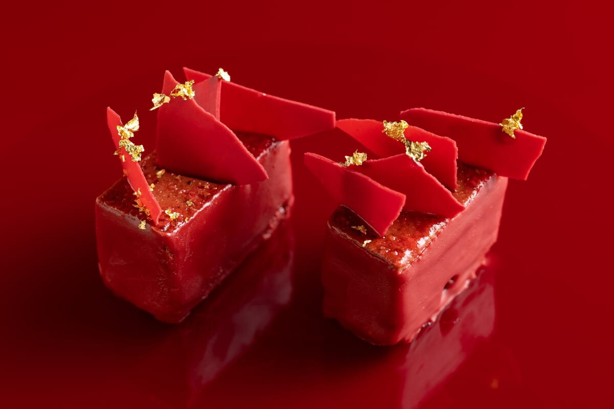 真っ赤なショコラに金箔がのった贅沢な一品。