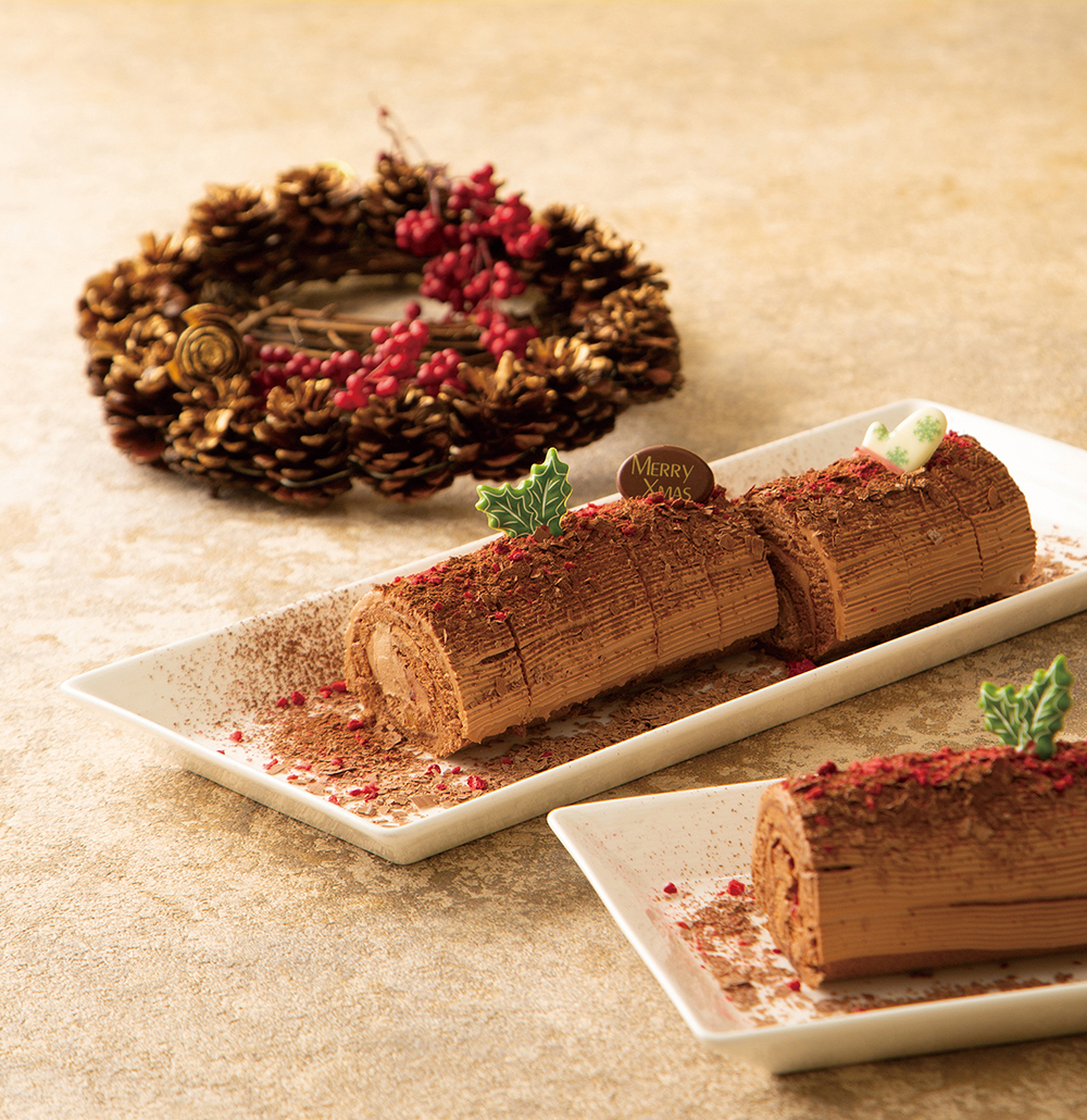 上品でコクのある甘さが魅力の北海道産生クリームで仕上げられたチョコクリームをたっぷり使った「ブッシュ・ド・ノエル」
