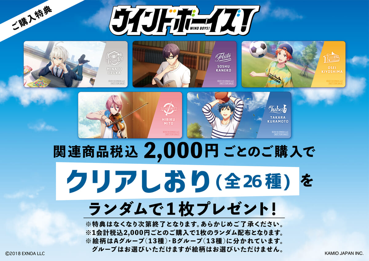 『ウインドボーイズ!』グッズを税込2,000円ごとの購入でクリアしおりを全26種から1枚をランダムでプレゼント!