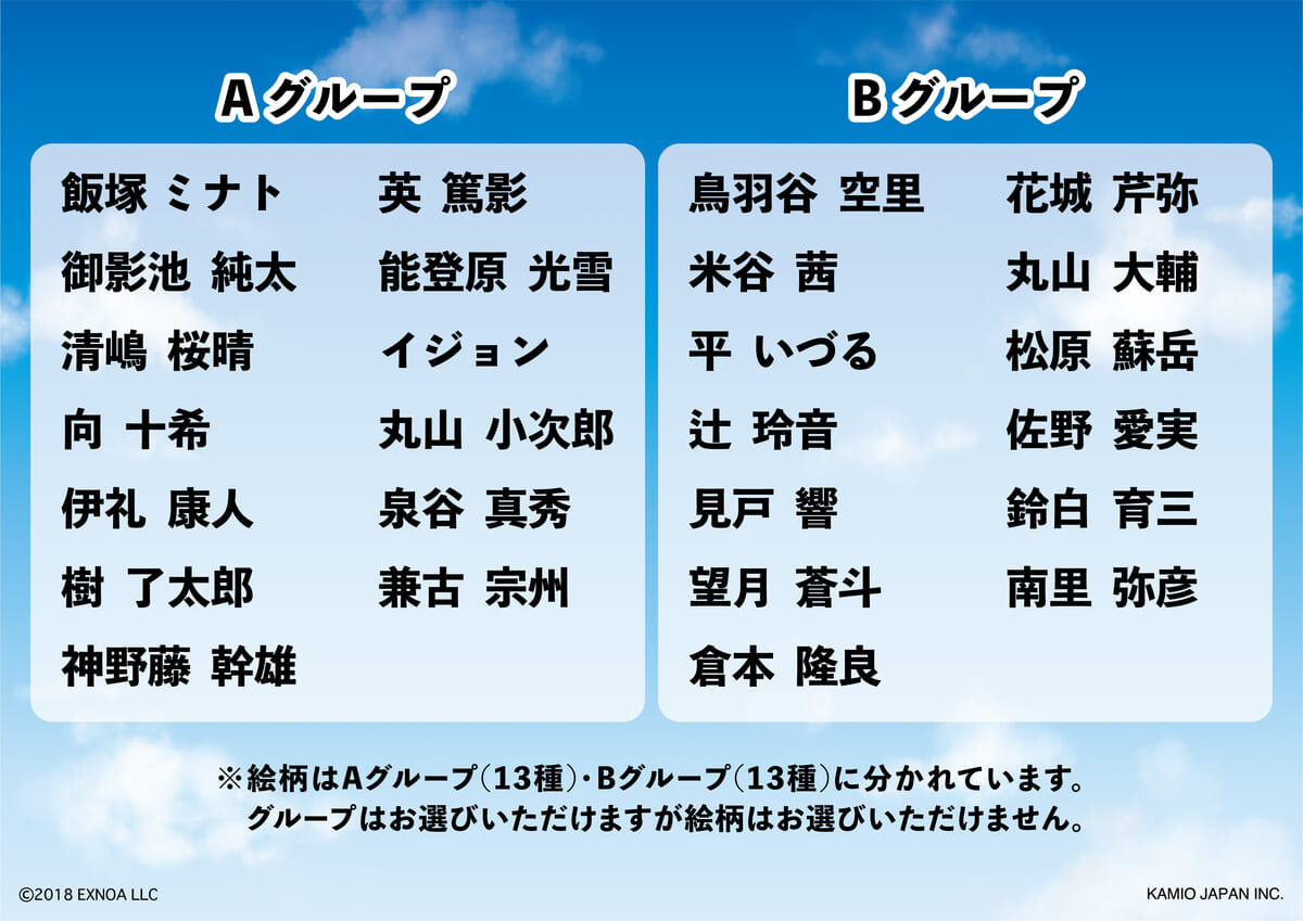 「清嶋桜晴」「向十希」「米谷茜」「倉本隆良」「花城芹弥」「能登原光雪」「見戸響」「英篤影」「望月蒼斗」「神野藤幹雄」「松原蘇岳」「佐野愛実」「泉谷真秀」が描かれたカードがランダムで入った「スクエアクリアカード vol.2」