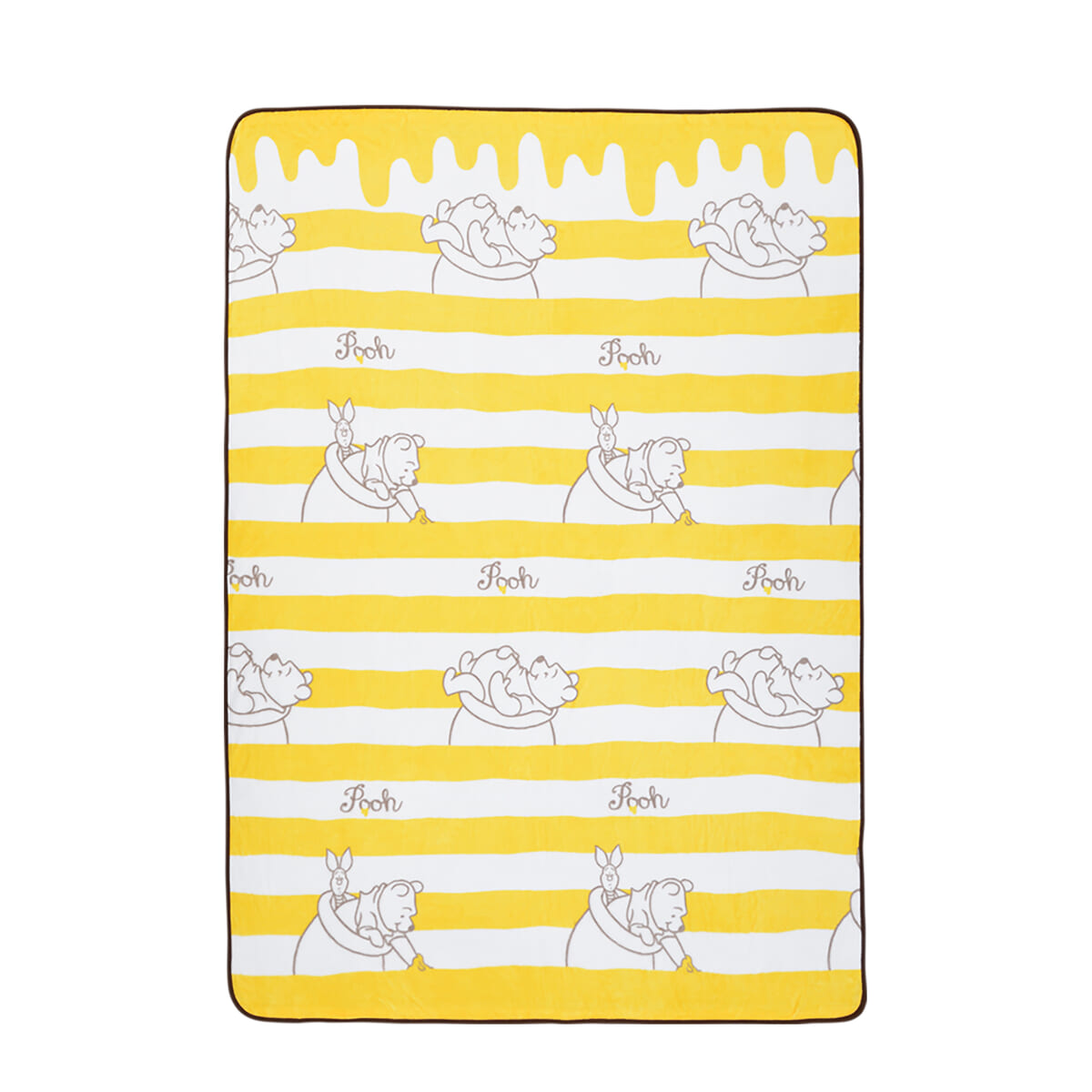 毛布全体にハニーポットから身を乗り出し、はちみつをすくう姿やリラックスポーズをプリント。