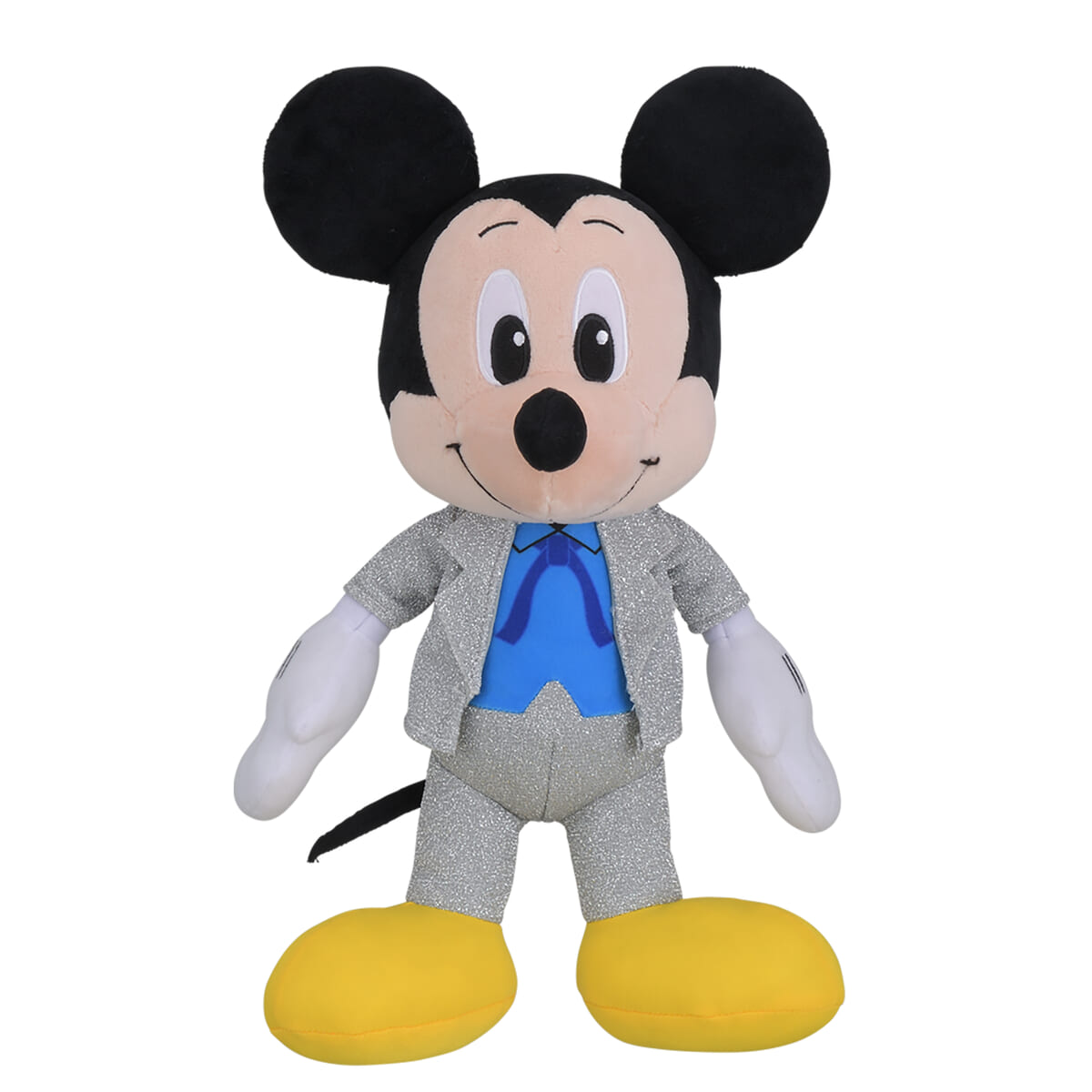 キラキラした生地を使用した、ディスコスタイルのコスチュームがかっこいい「ミッキーマウス」のぬいぐるみです。