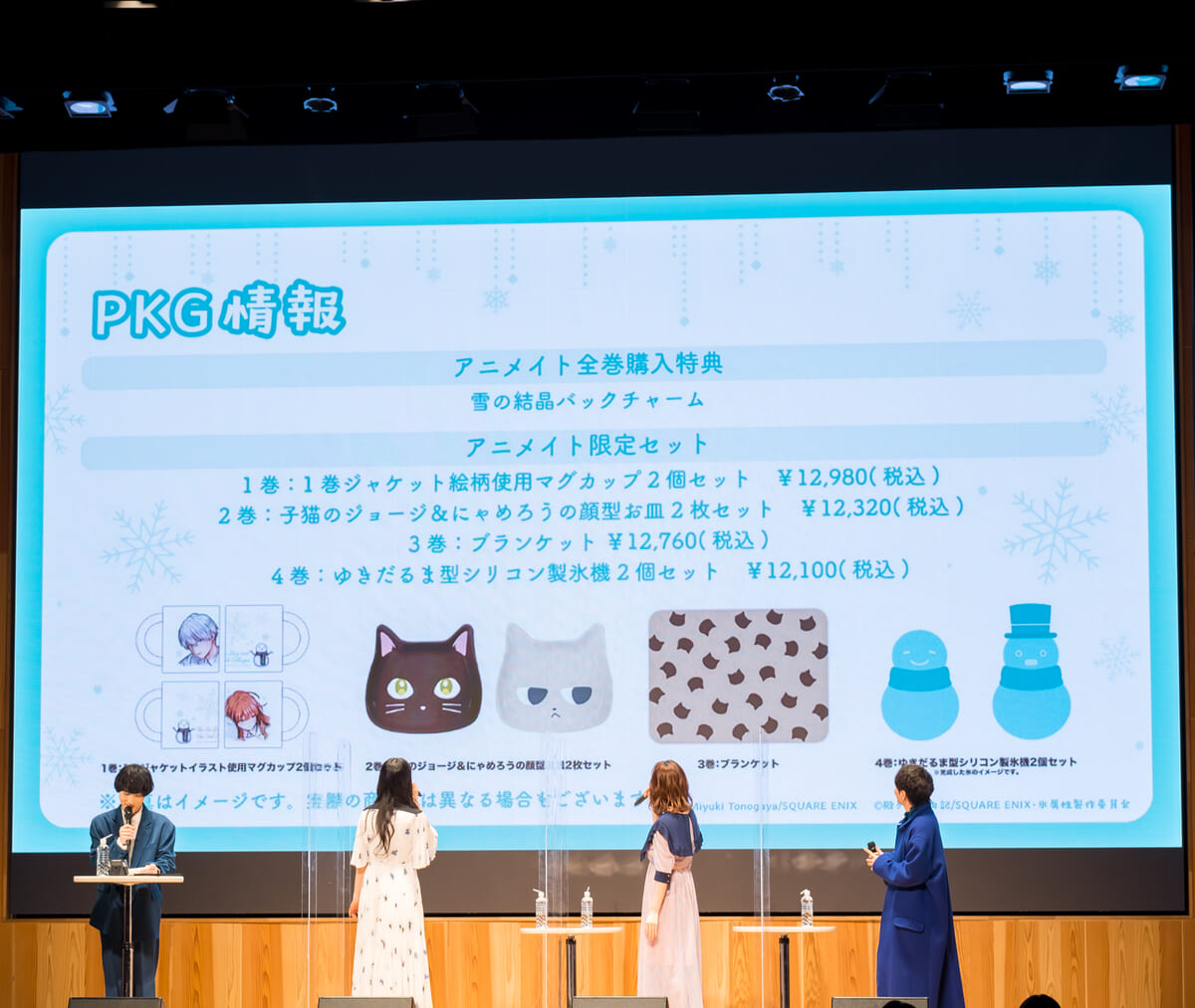 アニメイト限定セット特典では「冬月さん」と「氷室くん」のデザインが愛らしいマグカップのセットや、雪だるま型の製氷機がラインナップされます☆