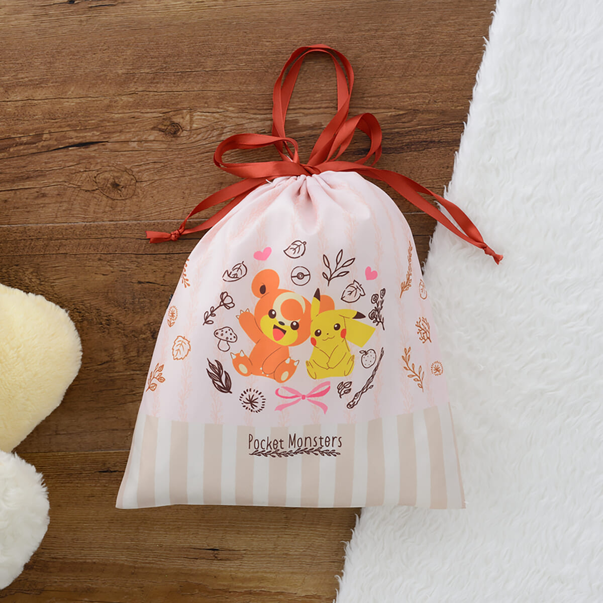 ピカチュウとヒメグマがデザインされた巾着付きです。