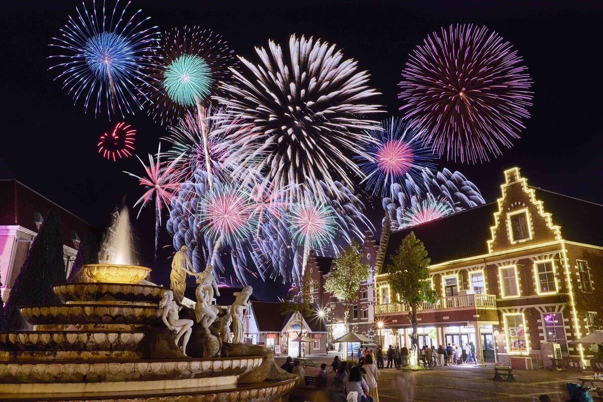1,300万球のイルミネーションとヨーロッパの街並みが花火でコラボレーションする光景は、ハウステンボスならではです☆