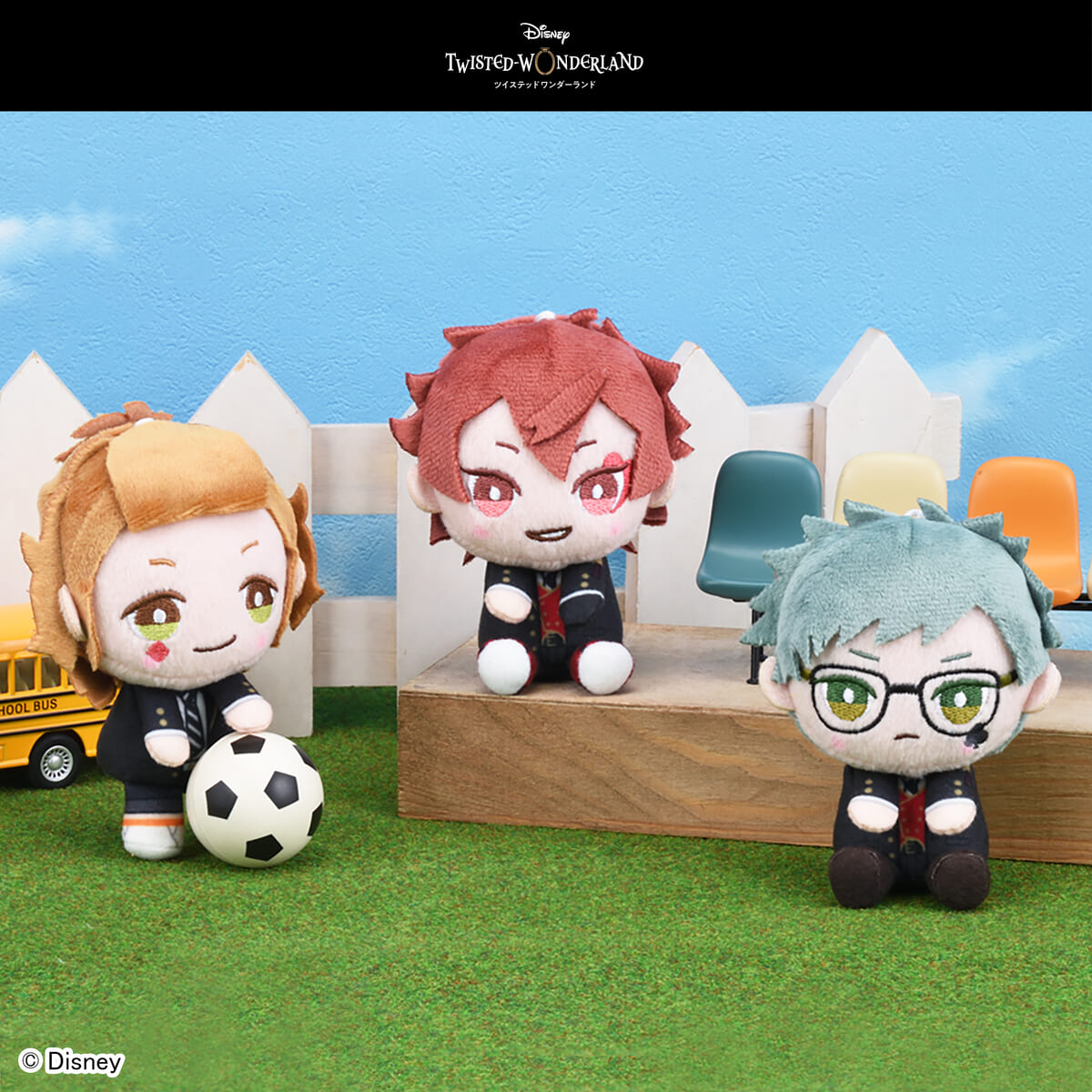 制服姿でラインナップされる、ハーツラビュル寮生3人のマスコット。