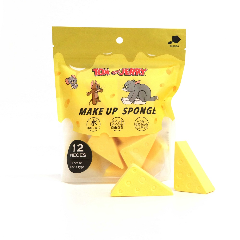 ファンデーションにもポイントメイクにも便利なダイカットパフは、遊び心あるチーズ型。