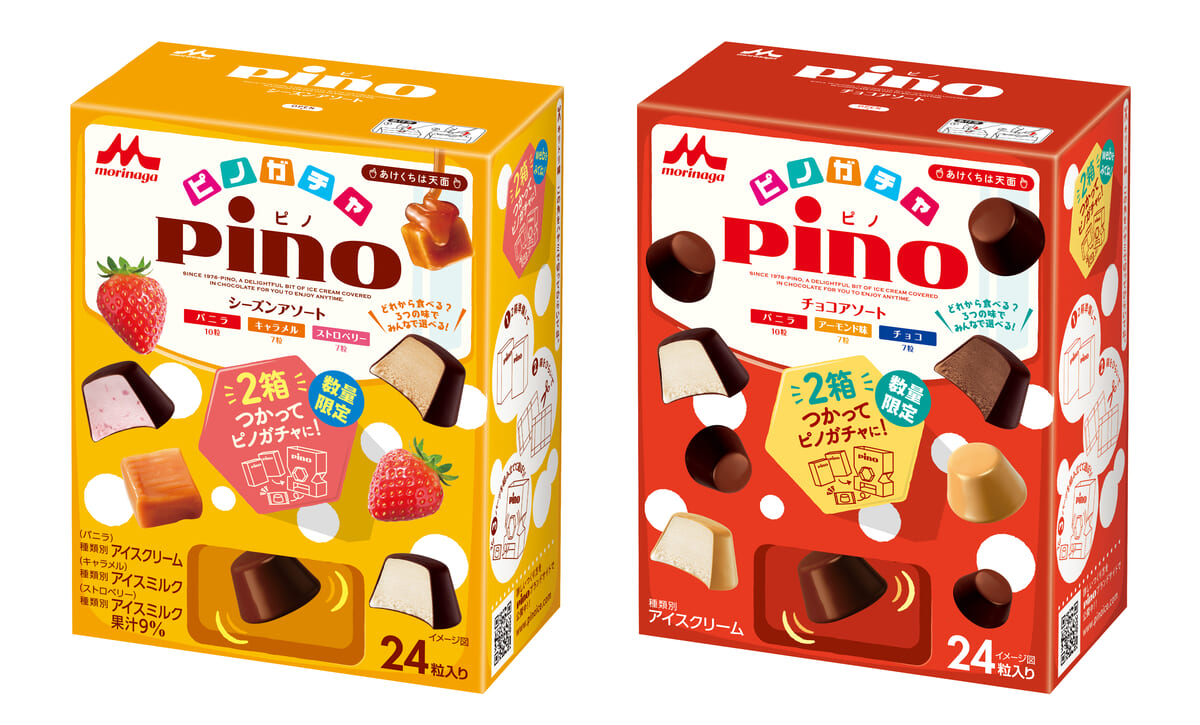 森永乳業のロングセラーブランド「ピノ」シリーズから、数量限定で「ピノ チョコアソート(ピノガチャパッケージ)」「ピノ シーズンアソート(ピノガチャパッケージ)」が登場!