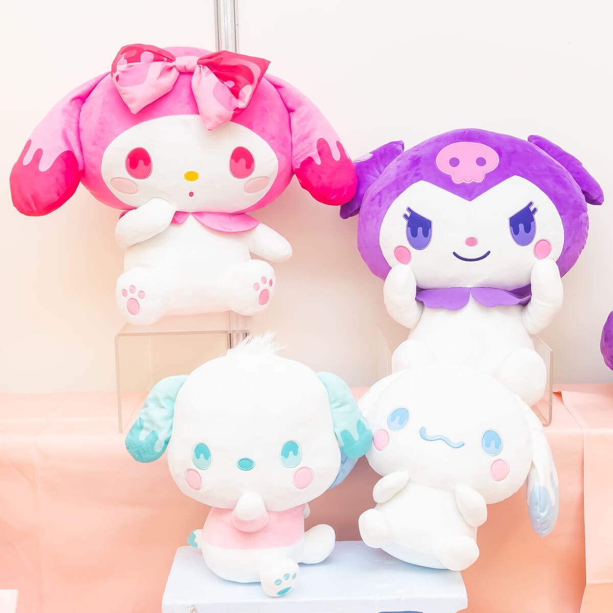 かわいいカラーリングやとろけたようなデザインが印象的な「サンリオキャラクターズ」のぬいぐるみ。