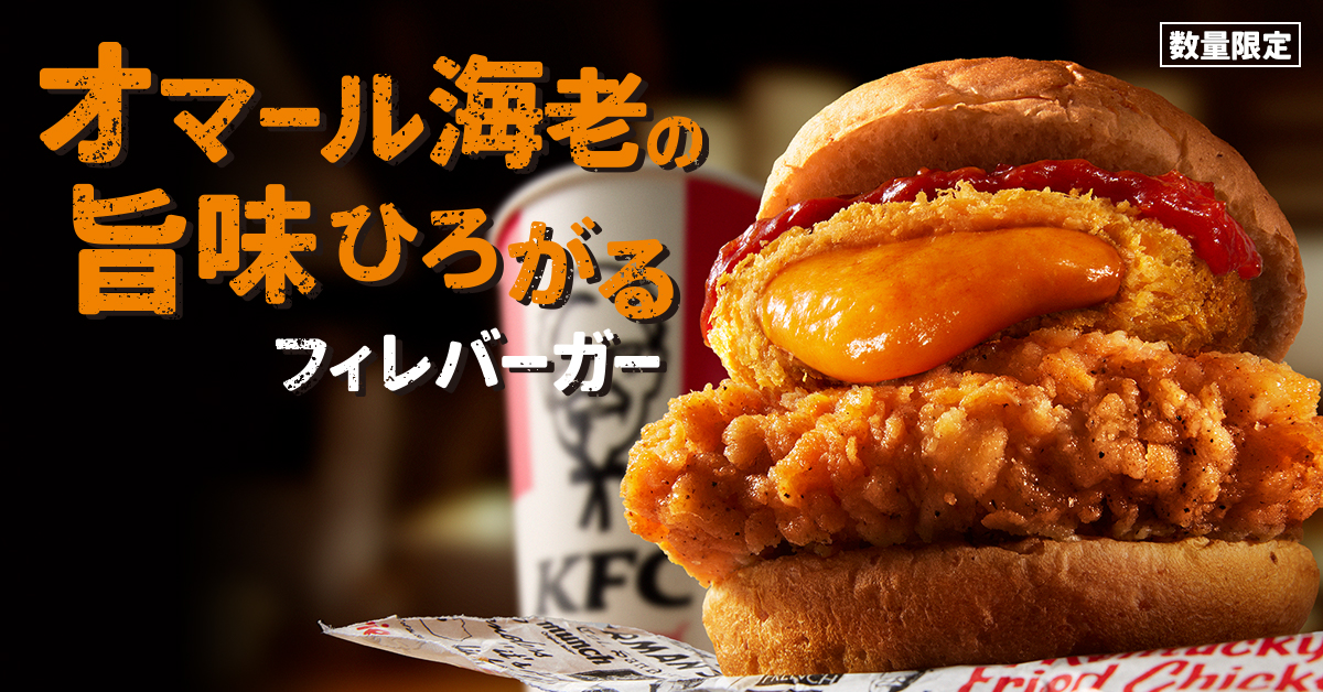 ケンタッキーフライドチキンから、「オマール海老の旨味ひろがるフィレバーガー」と「オマール海老の旨味ひろがるチーズフィレバーガー」が数量限定で登場!