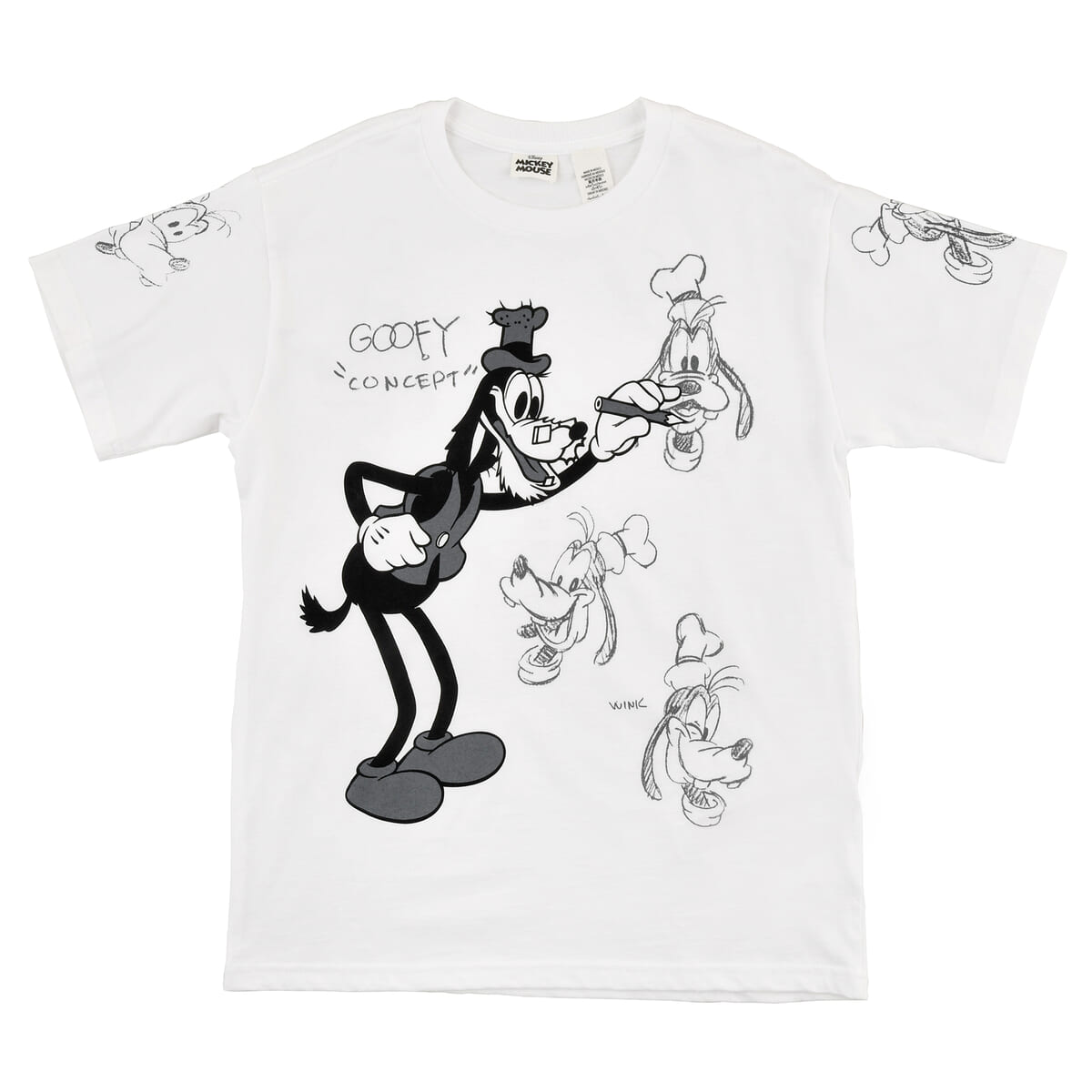 モノトーンのイラストがおしゃれな「グーフィー」の半袖Tシャツ。