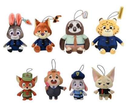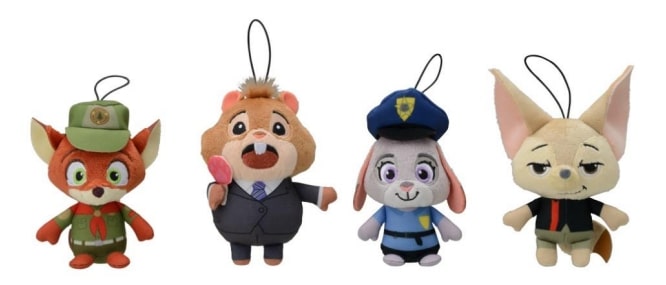 『ズートピア』に登場するキャラクターたちのマスコットサイズのぬいぐるみ。