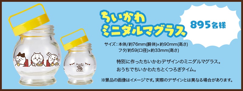 置いておくだけでもかわいい「ちいかわ ミニダルマグラス」が、抽選で計1,000名に当たります!