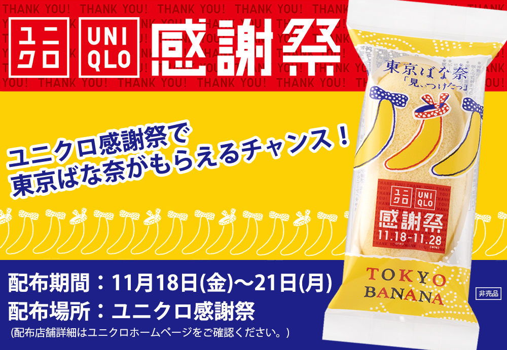 4日間限定で開催される特別企画「全国銘菓祭」企画にて、ユニクロ店舗に来店したお客さまに「東京ばな奈」が1個プレゼントされることになりました。