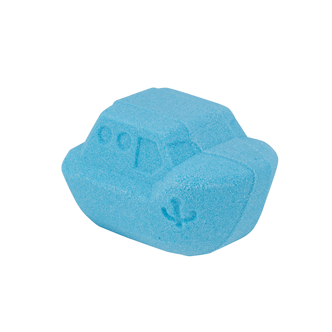 船型の入浴剤を湯船に溶かすと、海を意識した水色のお湯になり、シャボンのかおりが広がります。