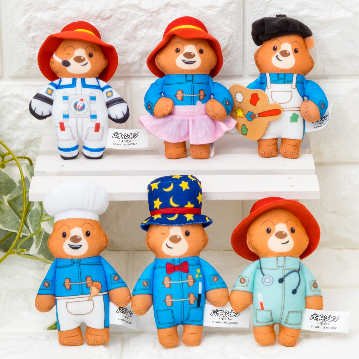 「パディントン」が様々な職業のコスチュームに身を包んだぬいぐるみがラインナップされます。