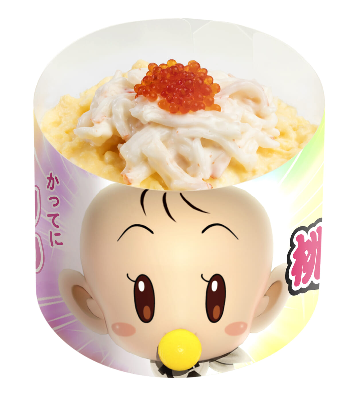 「かってにもりもりにちたのねん!」という「ミニボンビー」のかわいらしいおせっかいをテーマに、たまごサラダにカニ風サラダ、ツナサラダと人気のサラダネタや、天かすなどをてんこ盛りにトッピング。