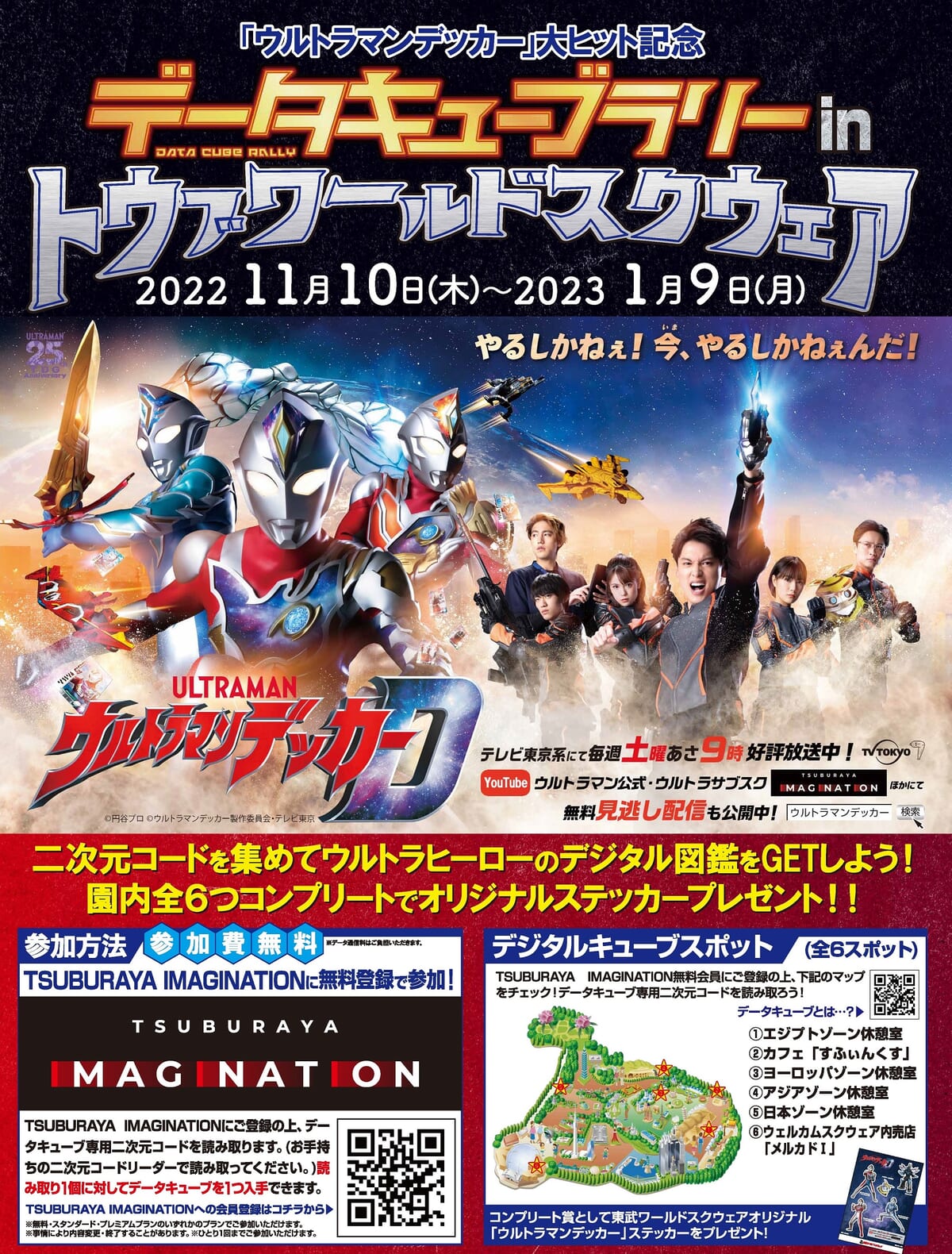『ウルトラマンデッカー』大ヒット記念「デジタルキューブラリー in トウブワールドスクウェア」は、2022年11月10日から2023年1月9日まで開催です!
