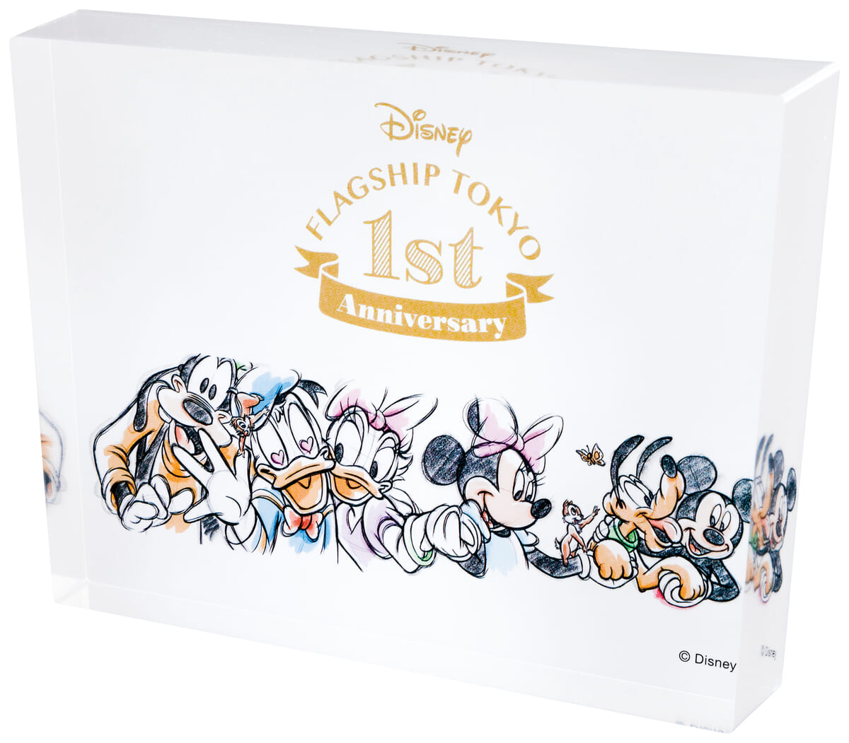 2021年12月にオープンした日本最大のディズニーストア、ディズニーフラッグシップ東京が1周年を迎えることを記念したアニバーサリーグッズもラインナップ。