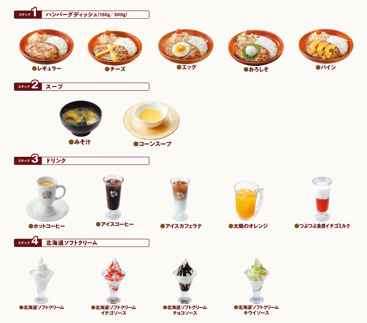 まずは5種類のハンバーグディッシュから1つを選びます。