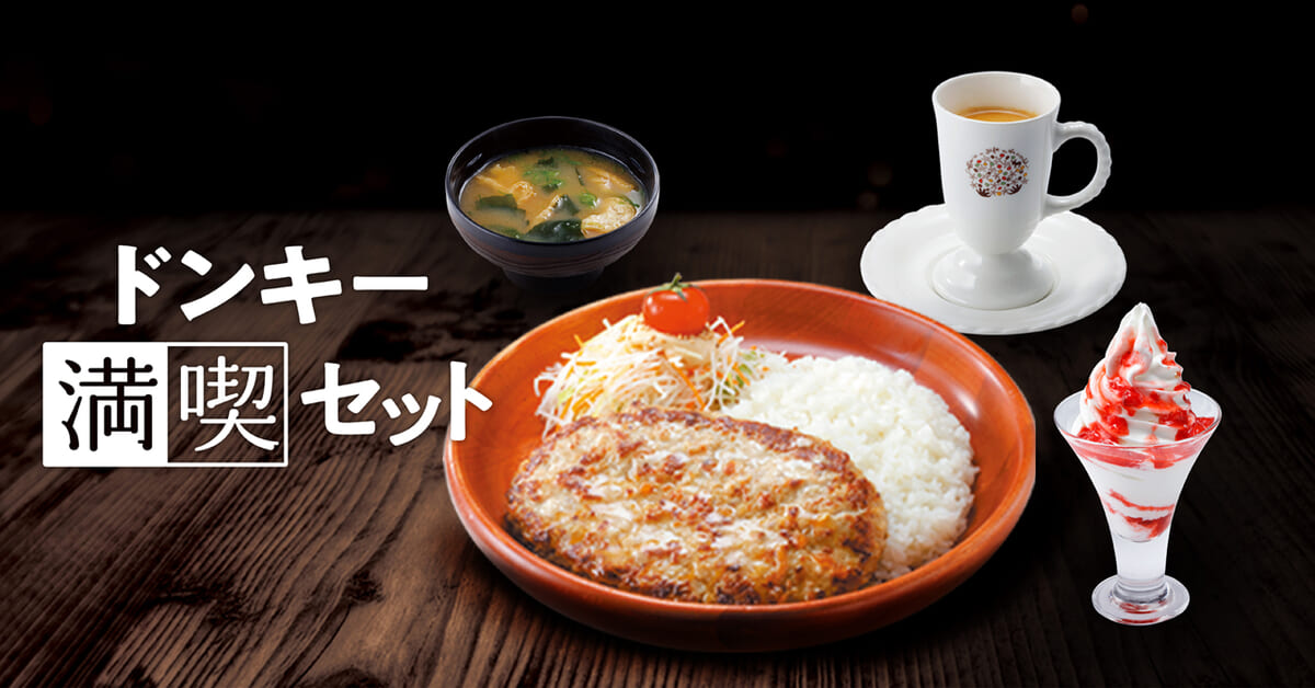 ハンバーグレストラン「びっくりドンキー」では、期間限定で「ドンキー満喫セット」を販売。