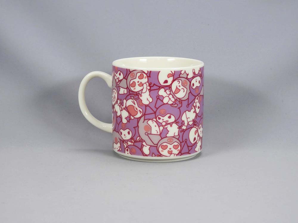 色々な表情の「クロミ」が配された総柄デザインのマグカップ。