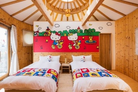 レトロかわいい「ハローキティ」に囲まれた、ポップなヴィラです!
