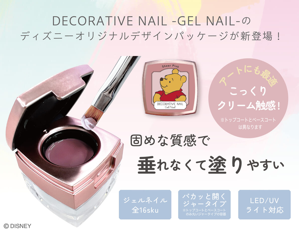 そんな「デコラティブネイル」は、蓋部分にディズニーキャラクターがプリントされたデザインパッケージのジェルネイルもラインナップ。